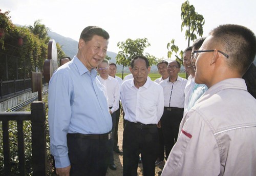 2015年7月16日下午,習(xí)近平來到了光東村。進(jìn)村前,經(jīng)過一大片水稻田時(shí),總書記下車,沿著泥濘的田埂走進(jìn)田里,同正在田間勞作的村民和農(nóng)技人員攀談起來。