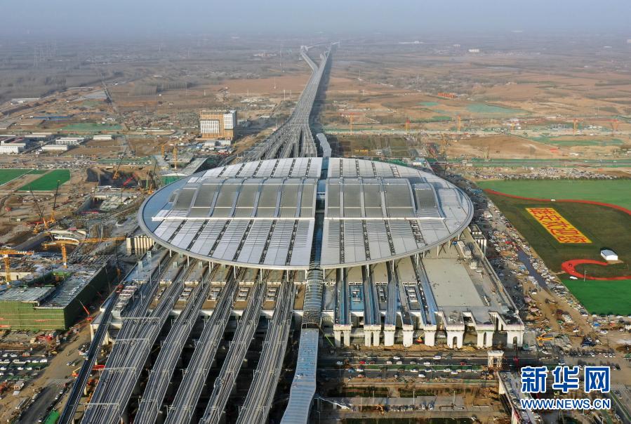這是2020年12月23日拍攝的京雄城際鐵路雄安站(無人機(jī)照片)。新華社記者 牟宇 攝