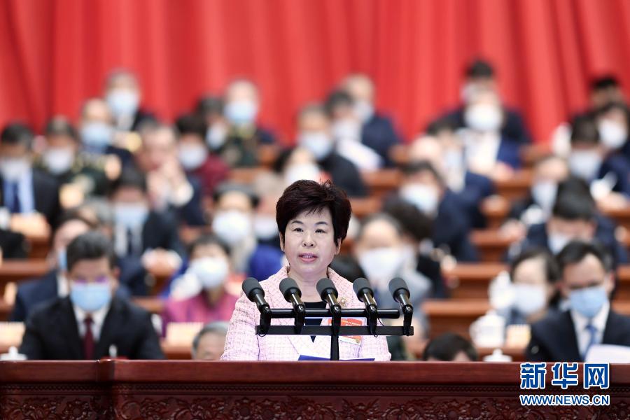 3月7日,全國政協(xié)十三屆四次會議在北京人民大會堂舉行第二次全體會議。這是韋震玲委員作大會發(fā)言。新華社記者 丁海濤 攝