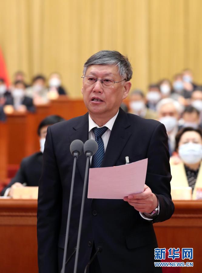 3月7日,全國政協(xié)十三屆四次會議在北京人民大會堂舉行第二次全體會議。這是吳國華委員代表臺盟中央作大會發(fā)言。新華社記者 丁海濤 攝