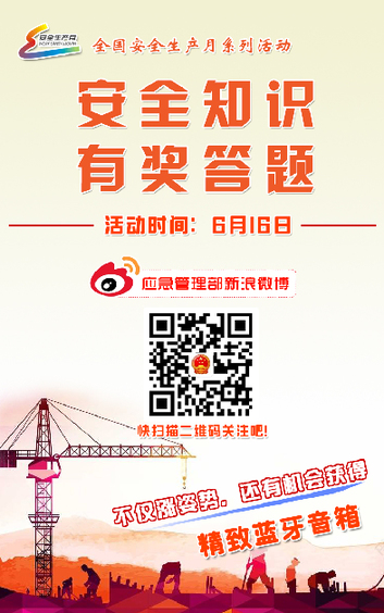 6月16日,應(yīng)急管理部新浪微博賬號將圍繞有限空間、交通安全、礦山安全、危化品、生活安全、自然災(zāi)害等生產(chǎn)生活中常見安全內(nèi)容開展安全知識答題活動,提高應(yīng)急避險和自救互救能力,參與活動還有機會獲得精美禮品。