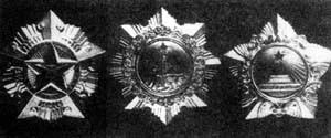 從左至右:一級八一勛章、一級獨立自由勛章、一級解放勛章