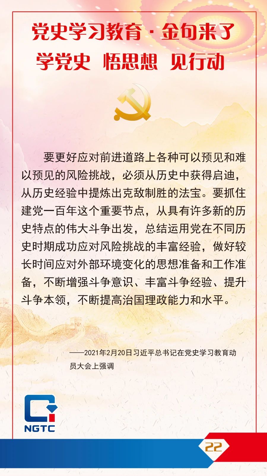 黨史學(xué)習(xí)教育·金句來了丨要更好應(yīng)對(duì)前進(jìn)道路上各種可以預(yù)見和難以預(yù)見的風(fēng)險(xiǎn)挑戰(zhàn),必須從歷史中獲得啟迪,從歷史經(jīng)驗(yàn)中提煉出克敵制勝的法寶