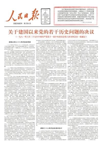 1981年7月1日,《人民日報》刊發(fā)《關于建國以來黨的若干歷史問題的決議》。資料照片