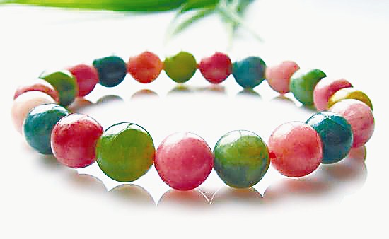 糖果碧璽一般指選擇紅藍(lán)綠三原色為主體的珠子搭配串成的手鏈。紅藍(lán)綠三色在碧璽中較為珍貴,串制糖果碧璽對珠子材料的要求很是苛刻,當(dāng)然效果也更加鮮艷可愛,如同糖果般惹人喜歡,顏色活潑生動,可紅可綠,可藍(lán)可紫,仿佛童年糖果罐中的糖果般鮮艷動人。同時,糖果珠鏈的普適人群范圍更加廣泛,不論男女老少均可佩戴。