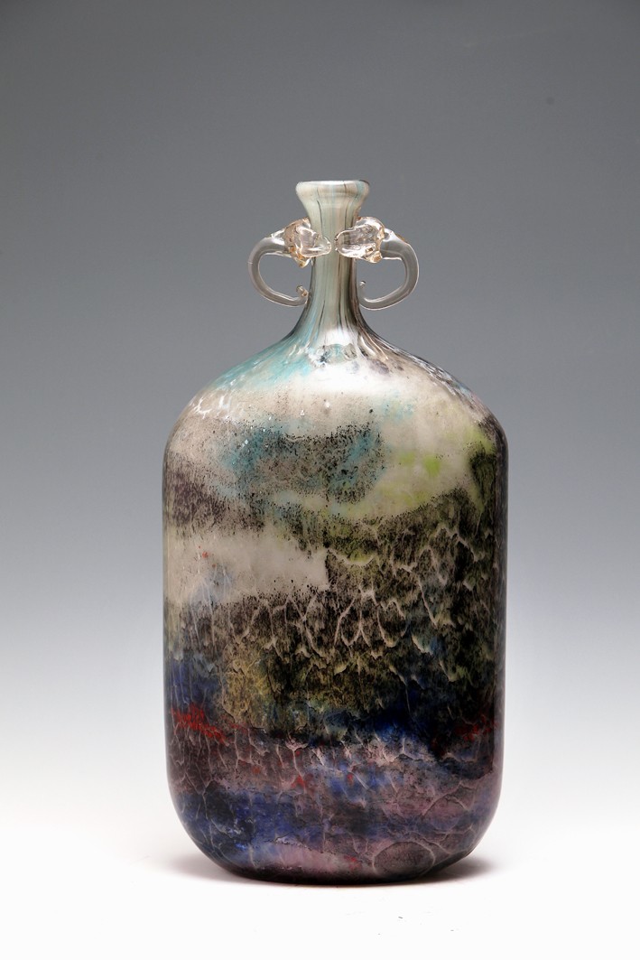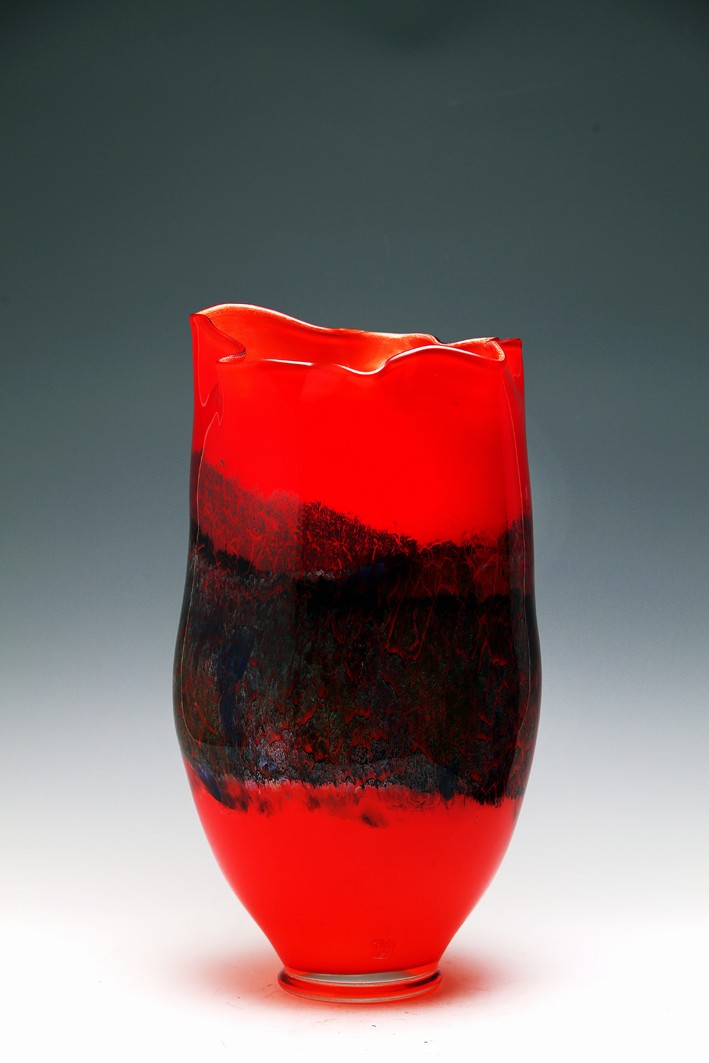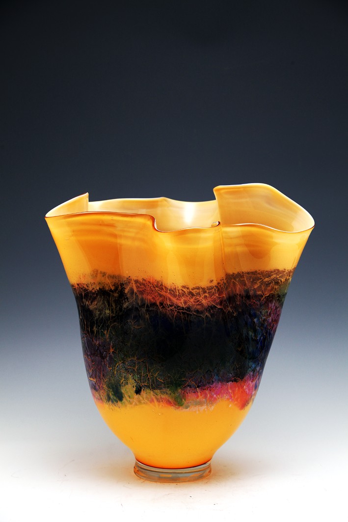 琉璃熱成形,是一種技與藝高度融合的藝術(shù)。石英砂在1400攝氏度下融化,出爐后四五分鐘之內(nèi)便凝固,藝術(shù)家就要在這么短的時間之內(nèi),為頑石賦予生命,把流動的色彩定格成云裳霓影。