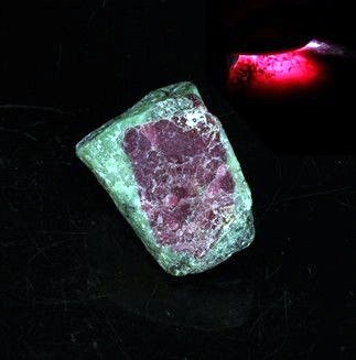 上海君道藝術(shù)展覽有限公司曾經(jīng)展出一塊緬甸頂級(jí)紅寶石原石,重760克,寶石顏色為頂級(jí)鴿血紅。原石是老坑石,高透明度的玻璃體,無雜質(zhì)、無裂紋。紅寶石體積較大,估計(jì)可達(dá)70%左右,在燈光照射時(shí)出現(xiàn)三束六射星光,把寶石放在暗室里,用射燈照射,寶石仿佛被燃燒了起來,原石的星光效應(yīng)非常明顯。