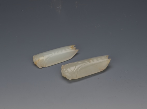 漢·白玉蟬。大蟬長(zhǎng)6.2厘米,寬2.9厘米;小蟬長(zhǎng)5.8厘米,寬2.7厘米。
