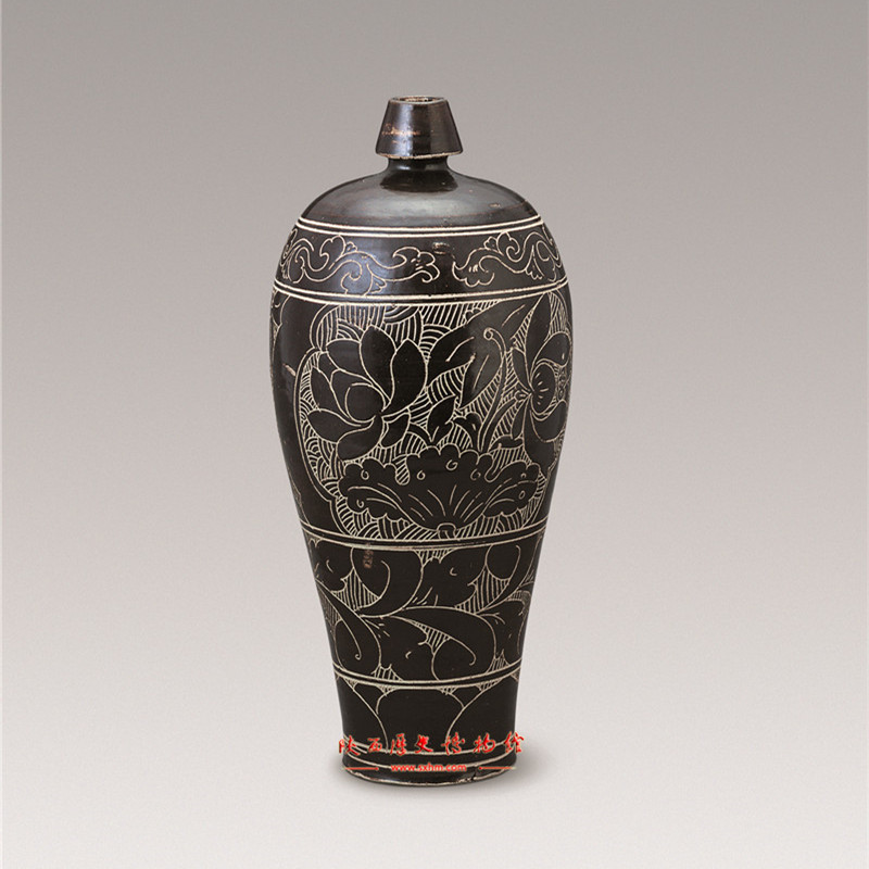 黑釉劃花荷蓮紋梅瓶,西夏。陜西歷史博物館