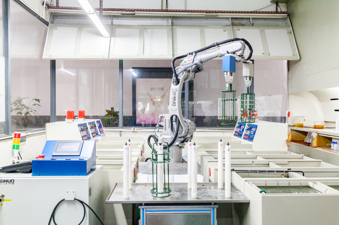 寶福聯(lián)合國(guó)際鉑金協(xié)會(huì)(PGI)發(fā)布了“鉑金4.0行業(yè)戰(zhàn)略”,旨在打破珠寶行業(yè)傳統(tǒng)生產(chǎn)模式,引領(lǐng)珠寶產(chǎn)業(yè)鉑金領(lǐng)域的轉(zhuǎn)型升級(jí);從上世紀(jì)90年代的“沖壓機(jī)械”到2000年代“半自動(dòng)機(jī)械”,再到2010年“數(shù)控+3D(三維,下同)建?!?,以及引領(lǐng)未來(lái)的“鉑金4.0”,寶福在智能制造領(lǐng)域一直走在業(yè)界前沿,不斷從德國(guó)、日本、瑞士、意大利等國(guó)家引進(jìn)了CNC計(jì)算機(jī)數(shù)字化控制設(shè)備及數(shù)控系統(tǒng)、織鏈機(jī)、車(chē)花機(jī)、3D掃描、3D打印、倒模機(jī)等國(guó)際先進(jìn)的生產(chǎn)設(shè)備,將傳統(tǒng)手工和現(xiàn)代機(jī)械制造相結(jié)合,充分發(fā)揮電子機(jī)械、高科技技術(shù)快速精準(zhǔn)的優(yōu)勢(shì),不斷提升產(chǎn)品質(zhì)量,增強(qiáng)加工精細(xì)化程度,豐富珠寶設(shè)計(jì)形式,為新產(chǎn)品的研發(fā)生產(chǎn)夯實(shí)基礎(chǔ),突破傳統(tǒng)首飾制造的“天花板”。同時(shí),寶福引入了自動(dòng)化生產(chǎn)設(shè)備“機(jī)械手”來(lái)取代人工工序,大大降低了能耗和生產(chǎn)成本,不僅使產(chǎn)品的標(biāo)準(zhǔn)化程度更高,也讓產(chǎn)品的品質(zhì)更穩(wěn)定。