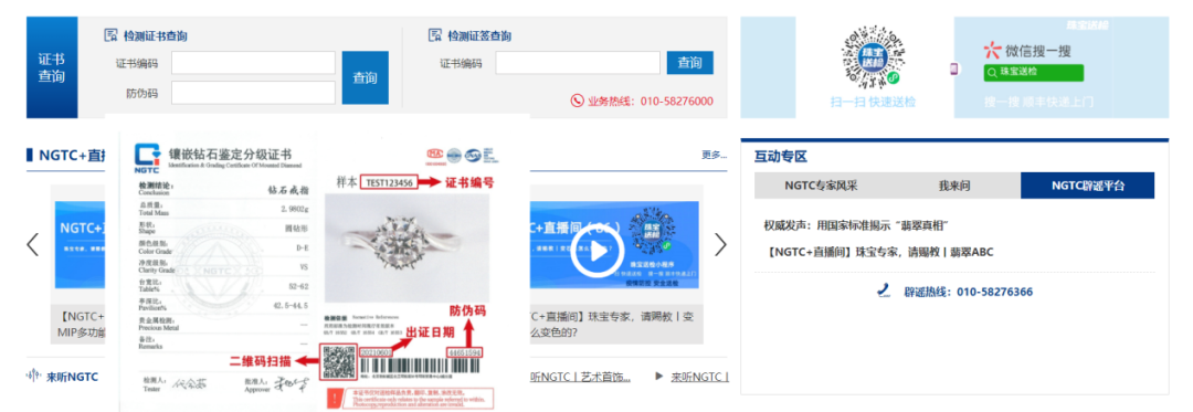 珠寶國(guó)檢(NGTC)官網(wǎng)(m.dlhstv.com)證書查詢專欄截圖