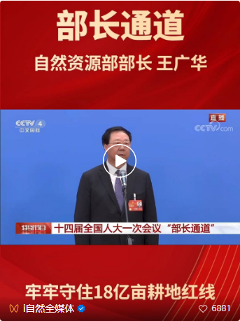自然資源部部長王廣華在全國兩會“部長通道”答記者問