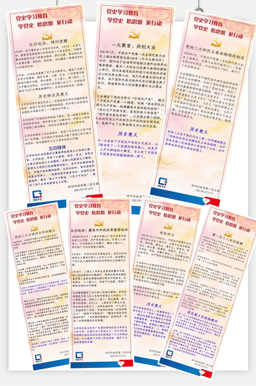 自珠寶國檢(NGTC)深圳實驗室黨總支黨史學習教育動員大會召開以來,第二黨支部支委會將黨史學習教育與“三會一課”充分融合,以黨小組為單位引導支部全體黨員認真學習貫徹習近平總書記在黨史學習教育動員大會上的重要講話精神及指定學習書籍,圍繞黨史發(fā)展歷程中的重大事件、重要會議、文件、精神等核心內容梳理支部學習內容清單,根據清單內容制作學習海報。