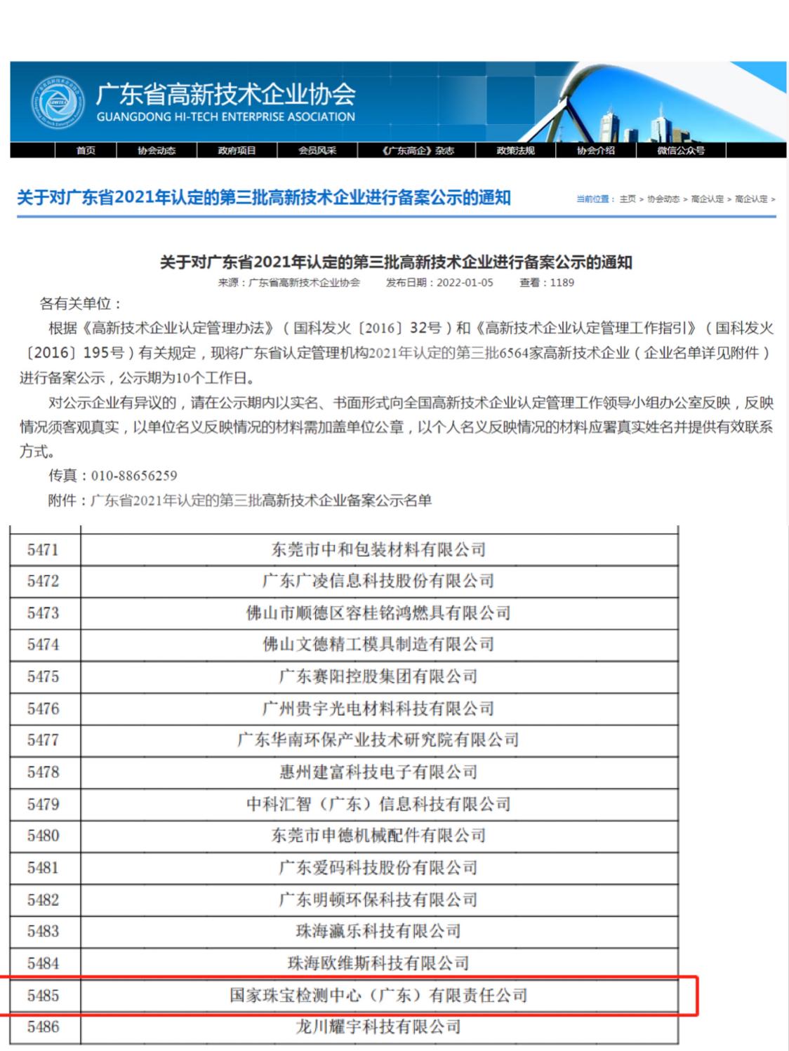 近日,國(guó)家珠寶檢測(cè)中心(廣東)有限責(zé)任公司(以下簡(jiǎn)稱“珠寶國(guó)檢廣州實(shí)驗(yàn)室”)首次申報(bào)“國(guó)家高新技術(shù)企業(yè)”,即獲批通過廣東省2021年第三批高新技術(shù)企業(yè)認(rèn)定。