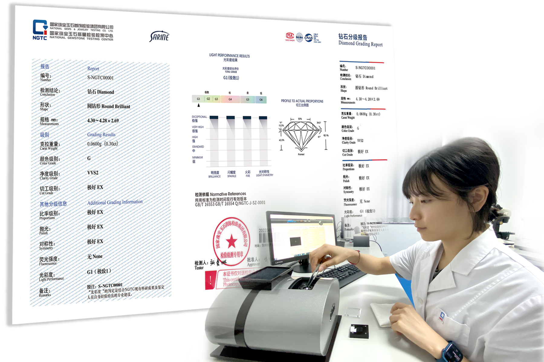 為了幫助珠寶消費(fèi)者和銷售從業(yè)人員以簡明直觀的方式了解鉆石的美觀度,珠寶國檢集團(tuán)與以色列尚靈科技集團(tuán)(Sarine)在保持長期良好合作基礎(chǔ)之上強(qiáng)強(qiáng)聯(lián)手,推出鉆石光彩度分級服務(wù),對鉆石進(jìn)行更加專業(yè)而全面的評價。