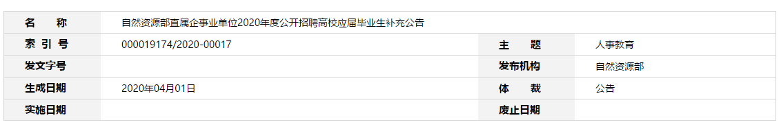 自然資源部直屬企事業(yè)單位2020年度公開招聘高校應(yīng)屆畢業(yè)生補充公告