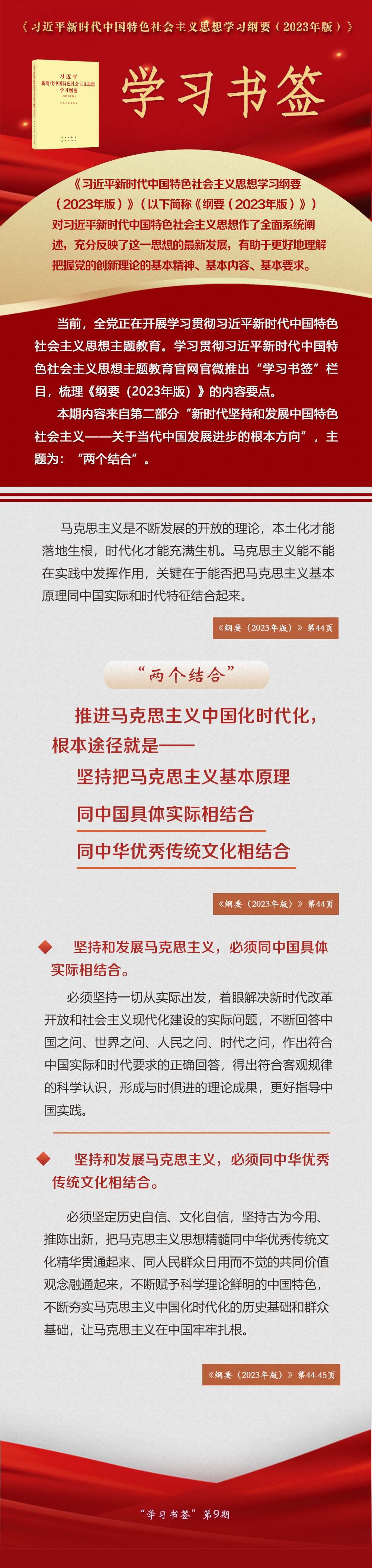 《習近平新時代中國特色社會主義思想學習綱要(2023年版)》 學習書簽丨“兩個結(jié)合”