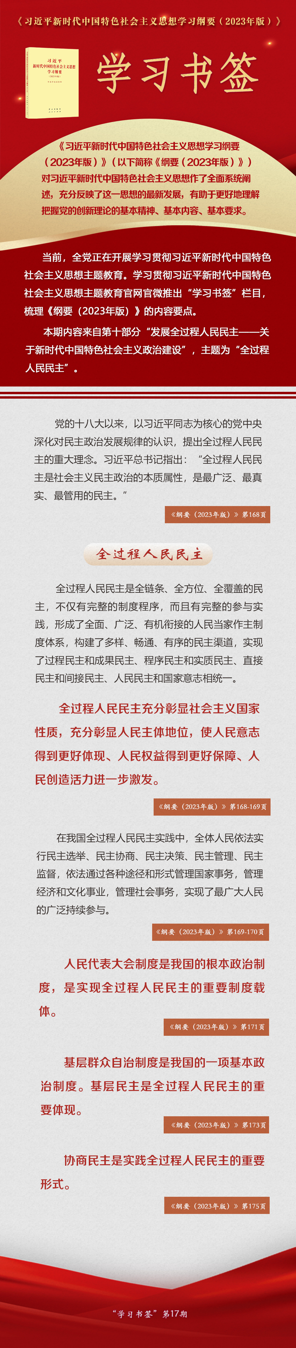 《習(xí)近平新時(shí)代中國(guó)特色社會(huì)主義思想學(xué)習(xí)綱要(2023年版)》 學(xué)習(xí)書簽丨全過(guò)程人民民主