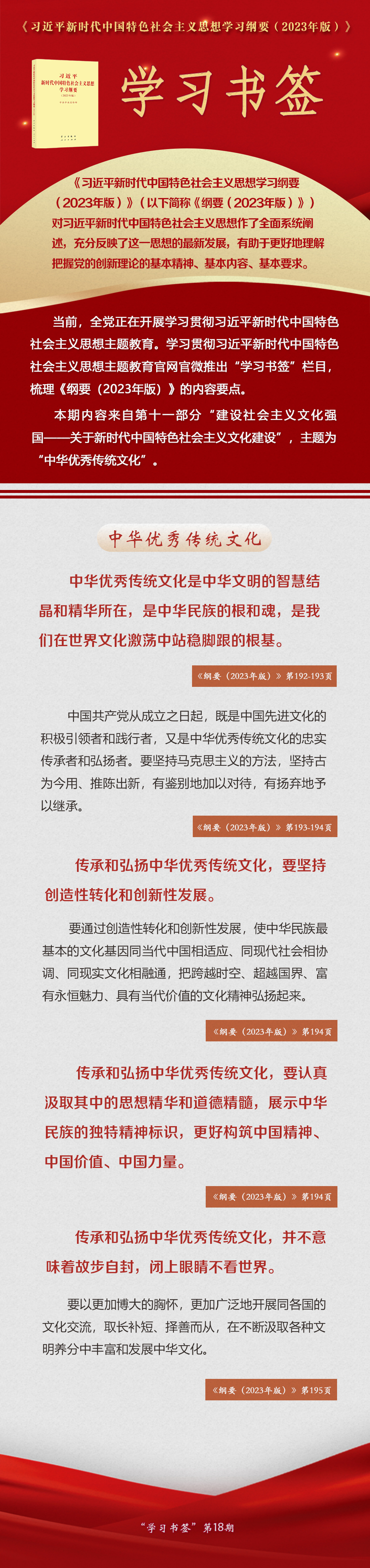 《習(xí)近平新時代中國特色社會主義思想學(xué)習(xí)綱要(2023年版)》 學(xué)習(xí)書簽丨中華優(yōu)秀傳統(tǒng)文化