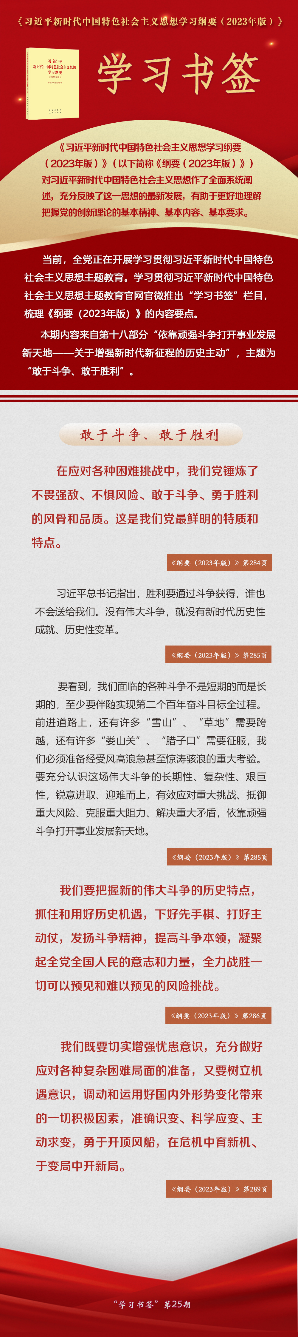《習(xí)近平新時(shí)代中國(guó)特色社會(huì)主義思想學(xué)習(xí)綱要(2023年版)》 學(xué)習(xí)書簽丨敢于斗爭(zhēng)、敢于勝利