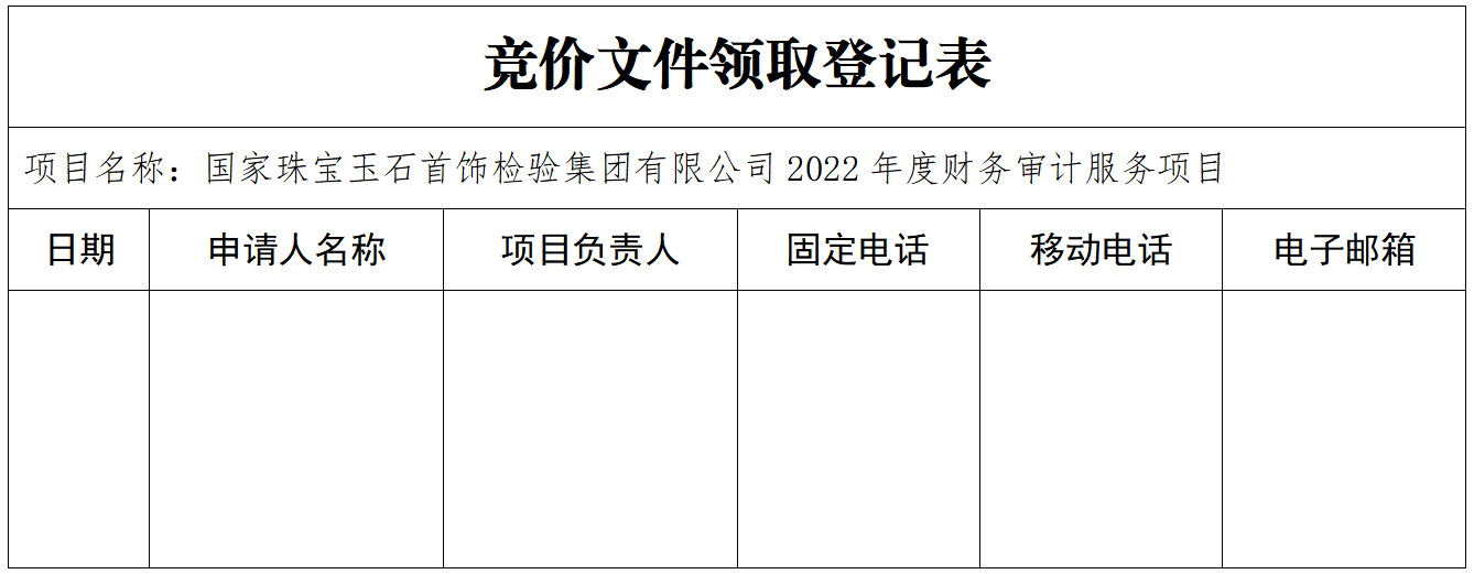 1.項(xiàng)目名稱:國家珠寶玉石首飾檢驗(yàn)集團(tuán)有限公司2022年度財(cái)務(wù)審計(jì)服務(wù)項(xiàng)目