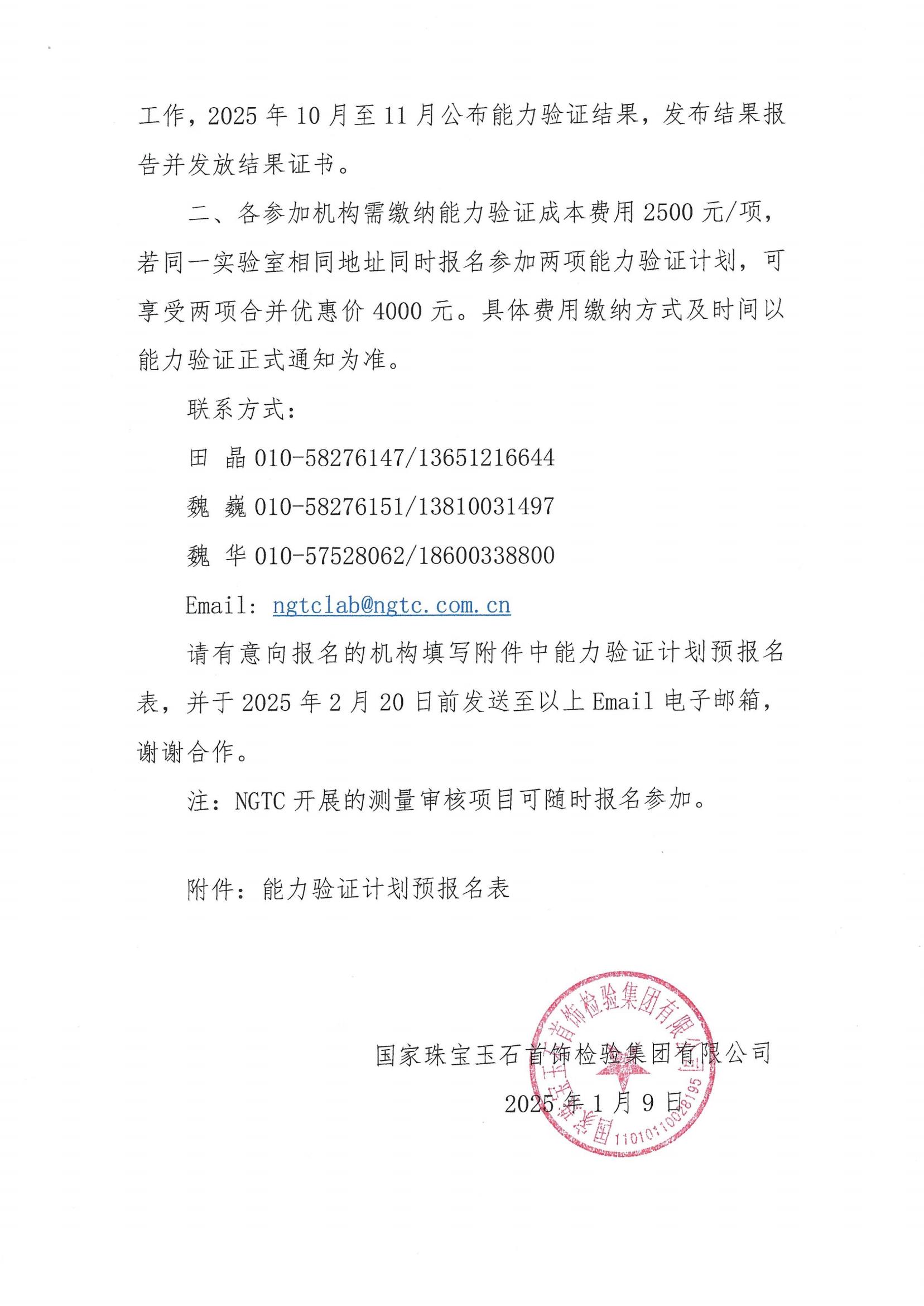 關于邀請參加2025年“珠寶玉石檢測”及“鑲嵌鉆石分級”能力驗證計劃的通知