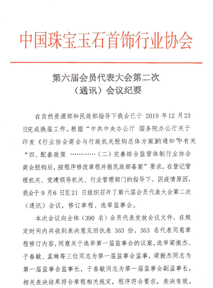 第六屆會員代表大會第二次(通訊)會議紀(jì)要