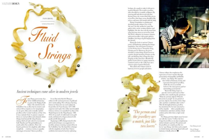 《衍異》系列作品有很多簡約的線條,跟珍珠的結(jié)合也非常巧妙,很多外國朋友也特別喜歡。瑞士前任大使夫人在參加“一帶一路”倡議相關(guān)活動(dòng)時(shí),特別佩戴了這樣的珍珠項(xiàng)飾,她認(rèn)為這款項(xiàng)飾既具有中國風(fēng)格,又具有很好的現(xiàn)代性、世界性。