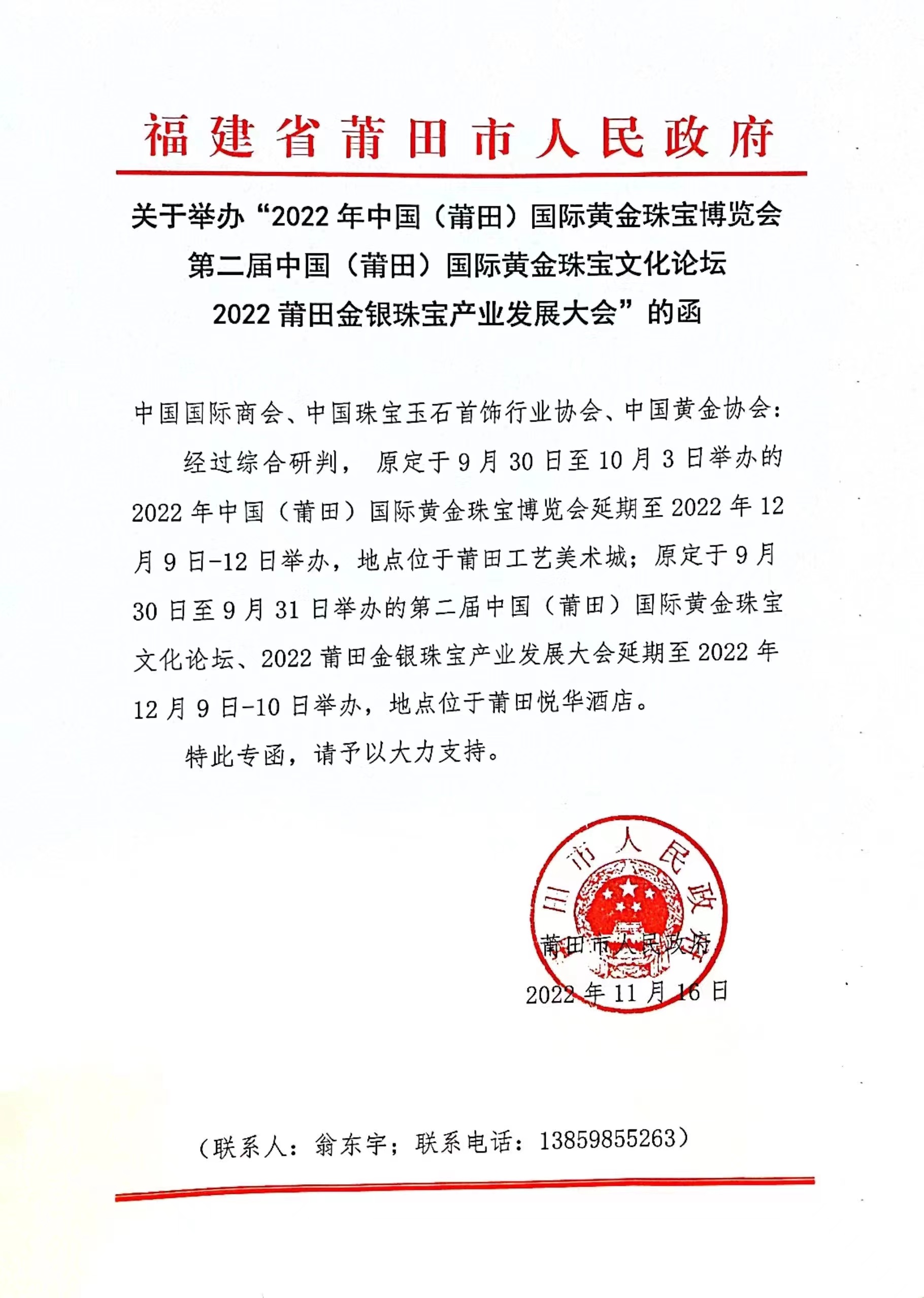 關(guān)于舉辦“2022年中國(莆田)國際黃金珠寶博覽會”的通知